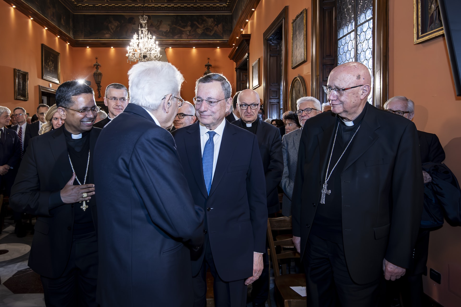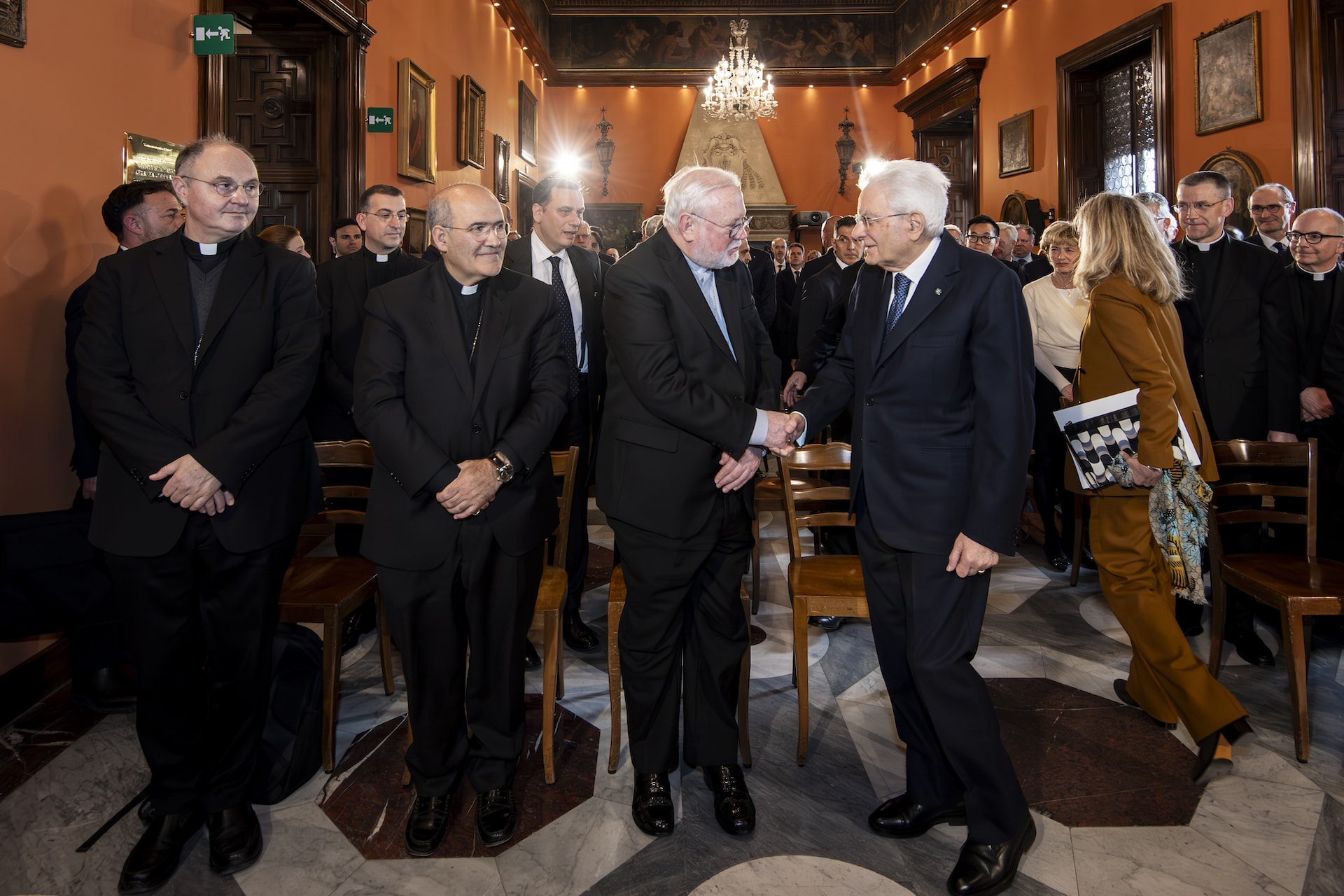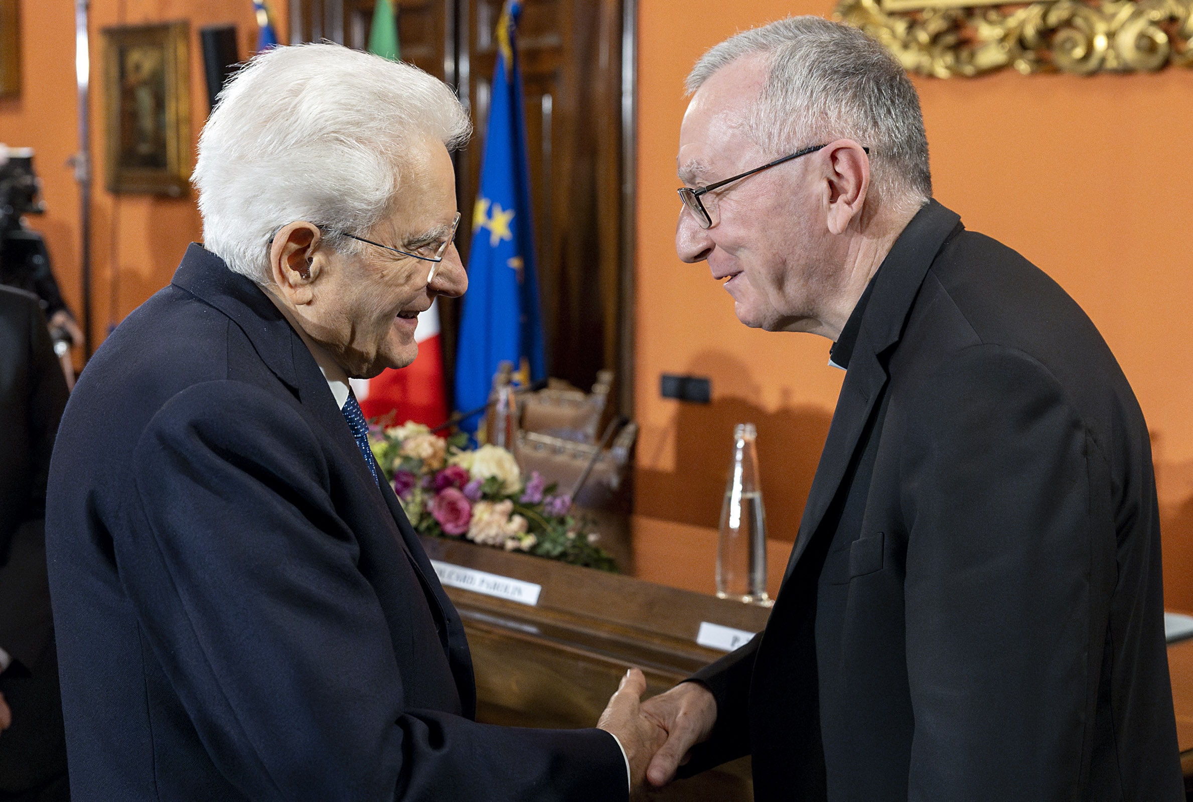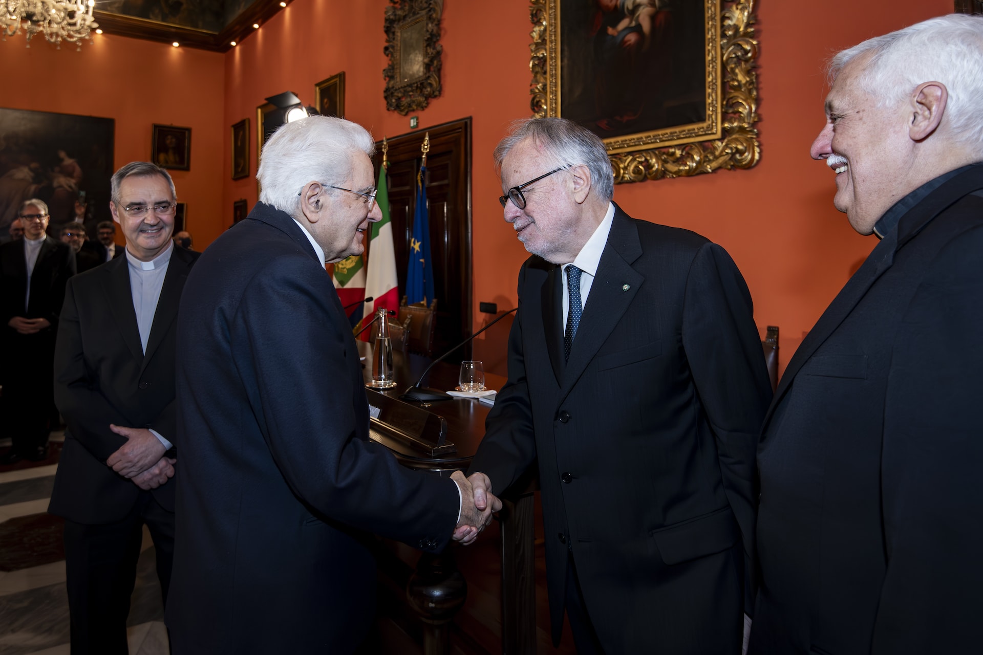 El director de «La Civiltà Cattolica», P. Nuno da Silva Gonçalves, S.I., saluda al Presidente de la República, Sergio Mattarella.