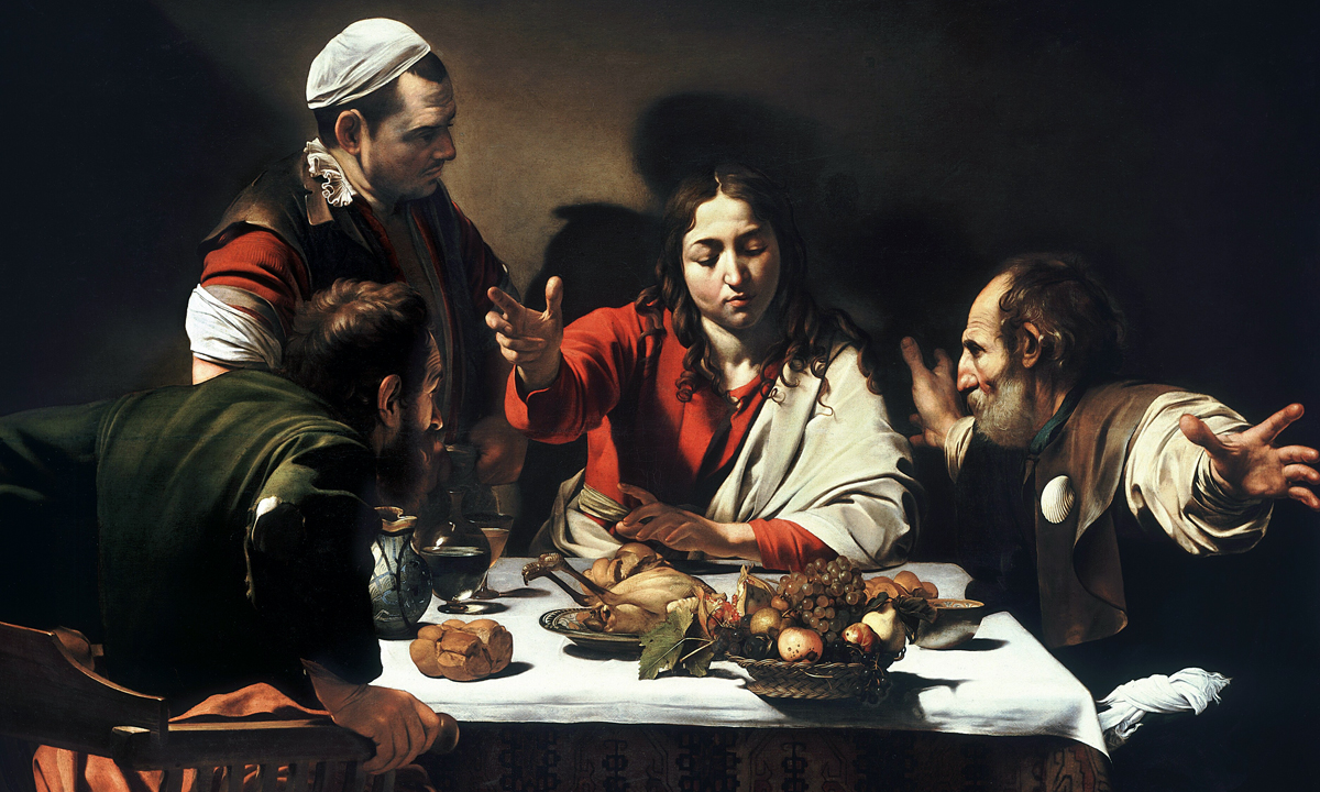Al llegar a casa, los dos piden al desconocido que se quede con ellos, porque el día ya declina. Jesús entra «para quedarse con ellos». Alrededor de la mesa, en la intimidad del hogar, según la costumbre judía, el huésped pronuncia la bendición, parte el pan y se lo da. Entonces se les abren los ojos y reconocen al Señor, que desaparece de su vista. Ellos, llenos de alegría, regresan a Jerusalén (11 km) para anunciar que han encontrado al Resucitado. Allí se enteran de que Jesús se había aparecido a Pedro.